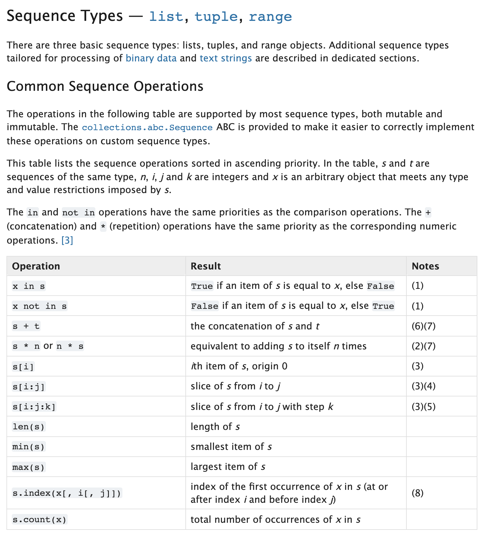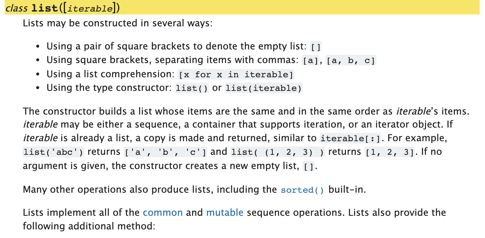 리스트를 클릭해 들어가보면, 리스트의 형태와 리스트가 어떤 객체인지에 대한 자세한 내용이 나와잇다.